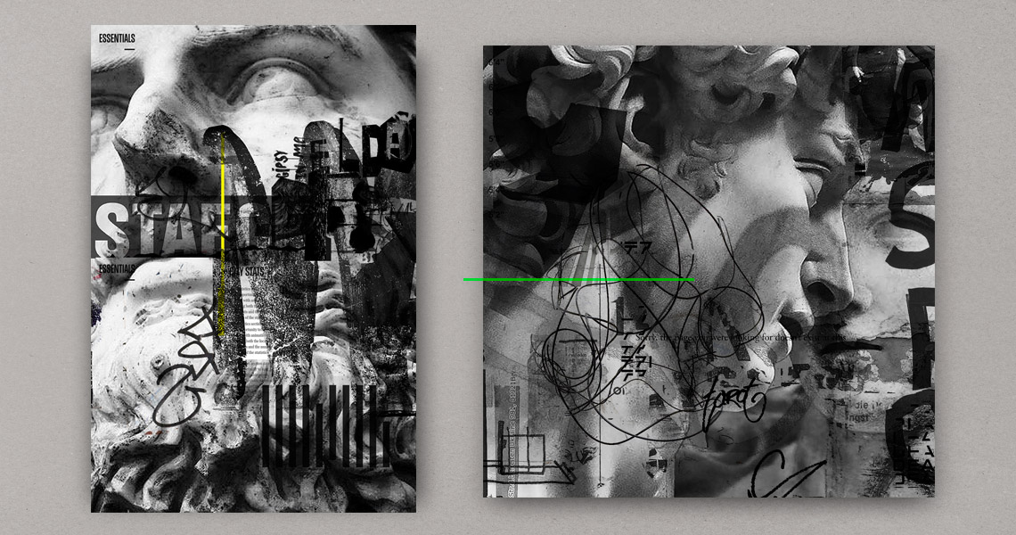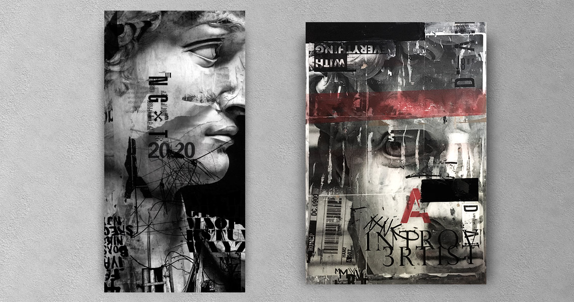 Various free worksFrom time to time i combine my digital tools with analogue brushes, real scissors and bad smelling glue to create artworks free from corporate needs or popular design aestetics. The work with collage and mixed media, the use of resin or certain transfer techniques train the imagination capabilities beyond the typical digital "try and and redo" working method, where there is always "Ctrl+Z".