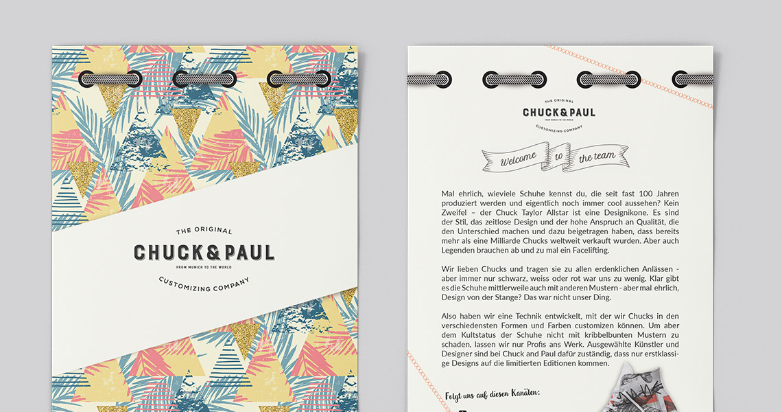 Corporate Design DevelopmentMal ehrlich, wieviele Schuhe kennst du, die seit fast 100 Jahren produziert werden und eigentlich noch immer cool aussehen? Kein Zweifel – der Chuck Taylor Allstar ist eine Designikone. Es sind der Stil, das zeitlose Design und der hohe Anspruch an Qualität, die den Unterschied machen und dazu beigetragen haben, dass bereits mehr als eine Milliarde Chucks weltweit verkauft wurden. Aber auch Legenden brauchen ab und zu mal ein Facelifting. Wir lieben Chucks und tragen sie zu allen erdenklichen Anlässen - aber immer nur schwarz, weiss oder rot war uns zu wenig. Klar gibt es die Schuhe mittlerweile auch mit anderen Mustern - aber mal ehrlich, Design von der Stange? Das war nicht unser Ding.