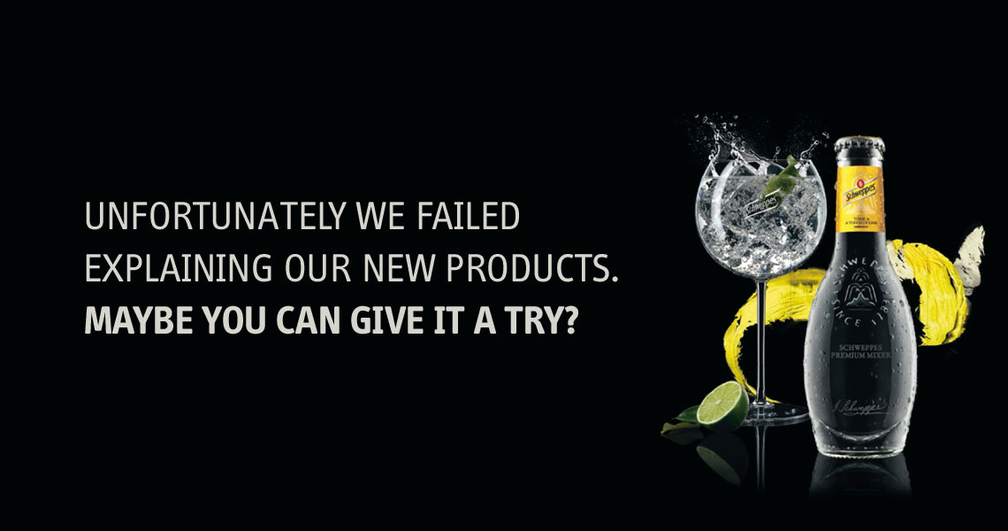 - Die „Filler“ sind offensichtlich ein Schweppes-Produkt – es ist daher nicht nötig (es wäre sogar kontraproduktiv), die Marke explizit zu benennen.
