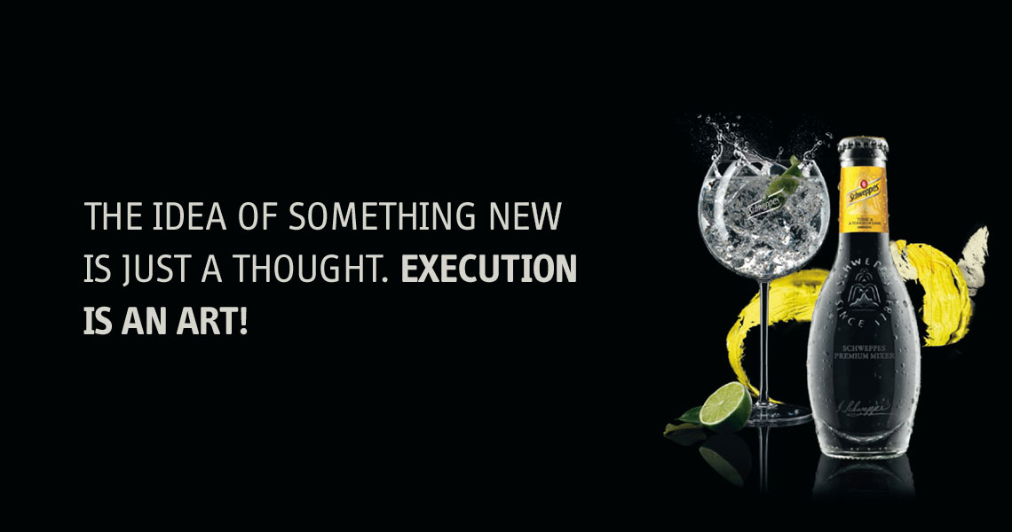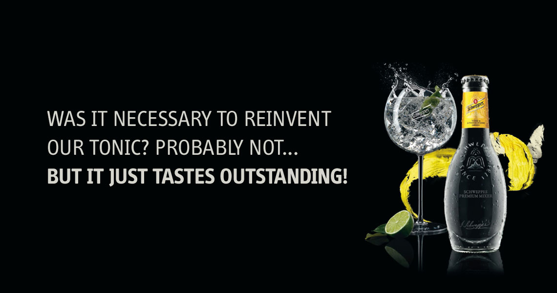 Das können wir mit zwei verbalen Strategien realisieren: 1. Eine ästhetisch-liebhaberische Kommunikation, in der wir davon sprechen, wie exquisit, ungewöhnlich und verspielt die Produkte sind und gerade Schweppes die Skillsets dazu hat. 2. Eine laute, provokante sogar freche Kommunikation, in der wir sagen, dass es an der Zeit für etwas Gewagtes, für etwas Ungewöhnliches ist und niemand anderes als Schweppes sich dies traut.